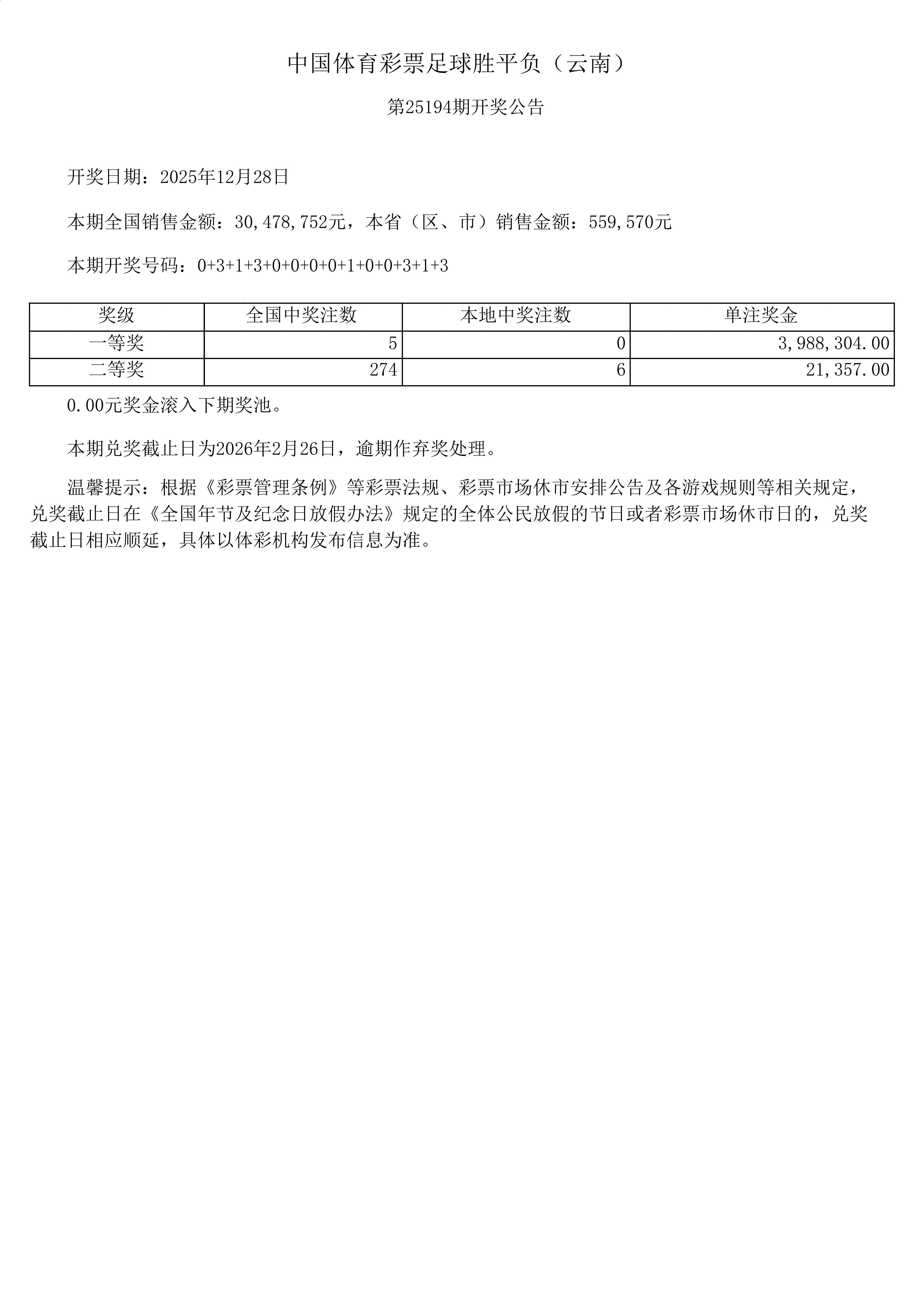 足球胜平负-25194期开奖公告