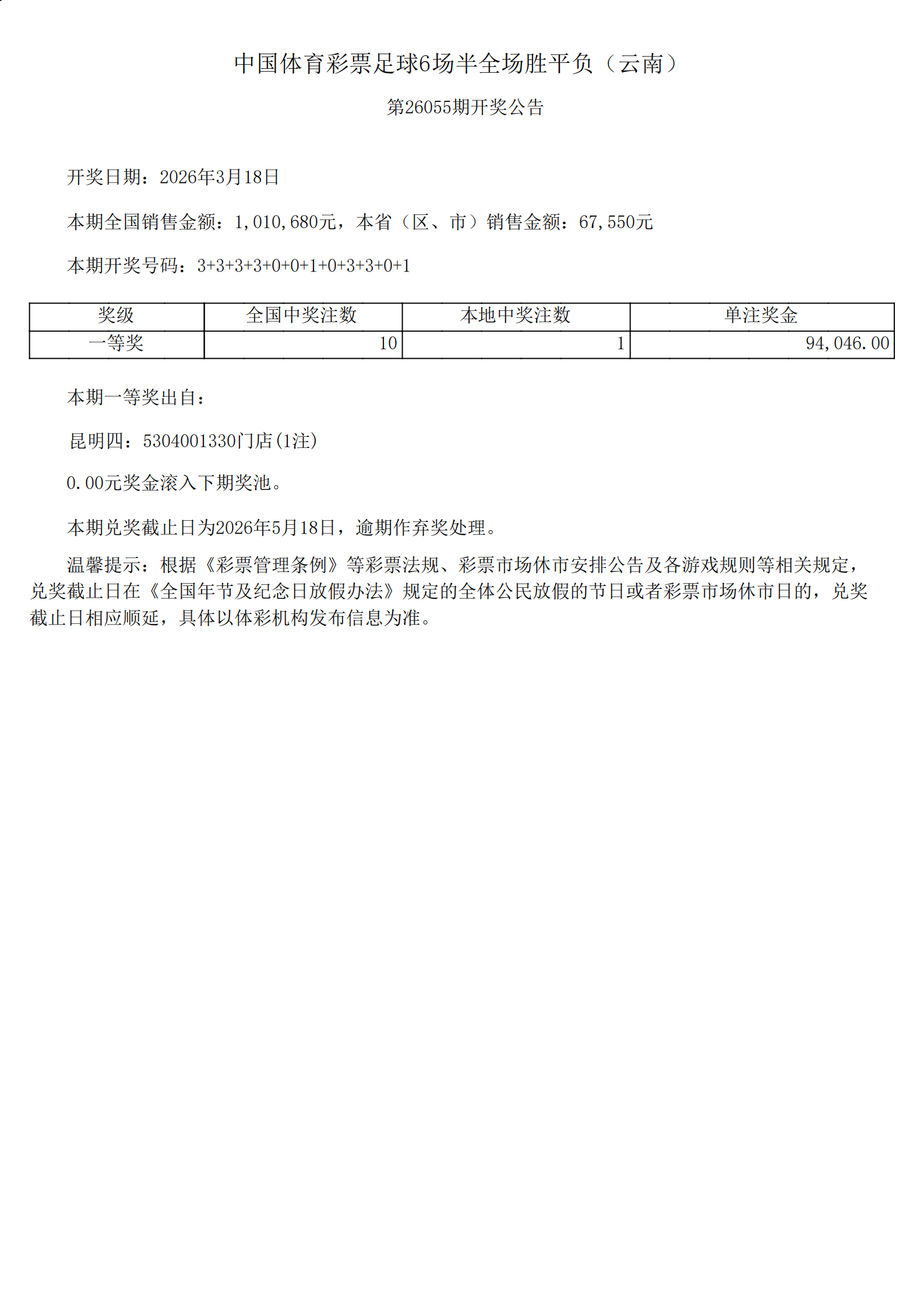 中国体育彩票温馨提示:购彩有节制,请理性投注!未满18周岁的未成年人不得购买彩票及兑奖!