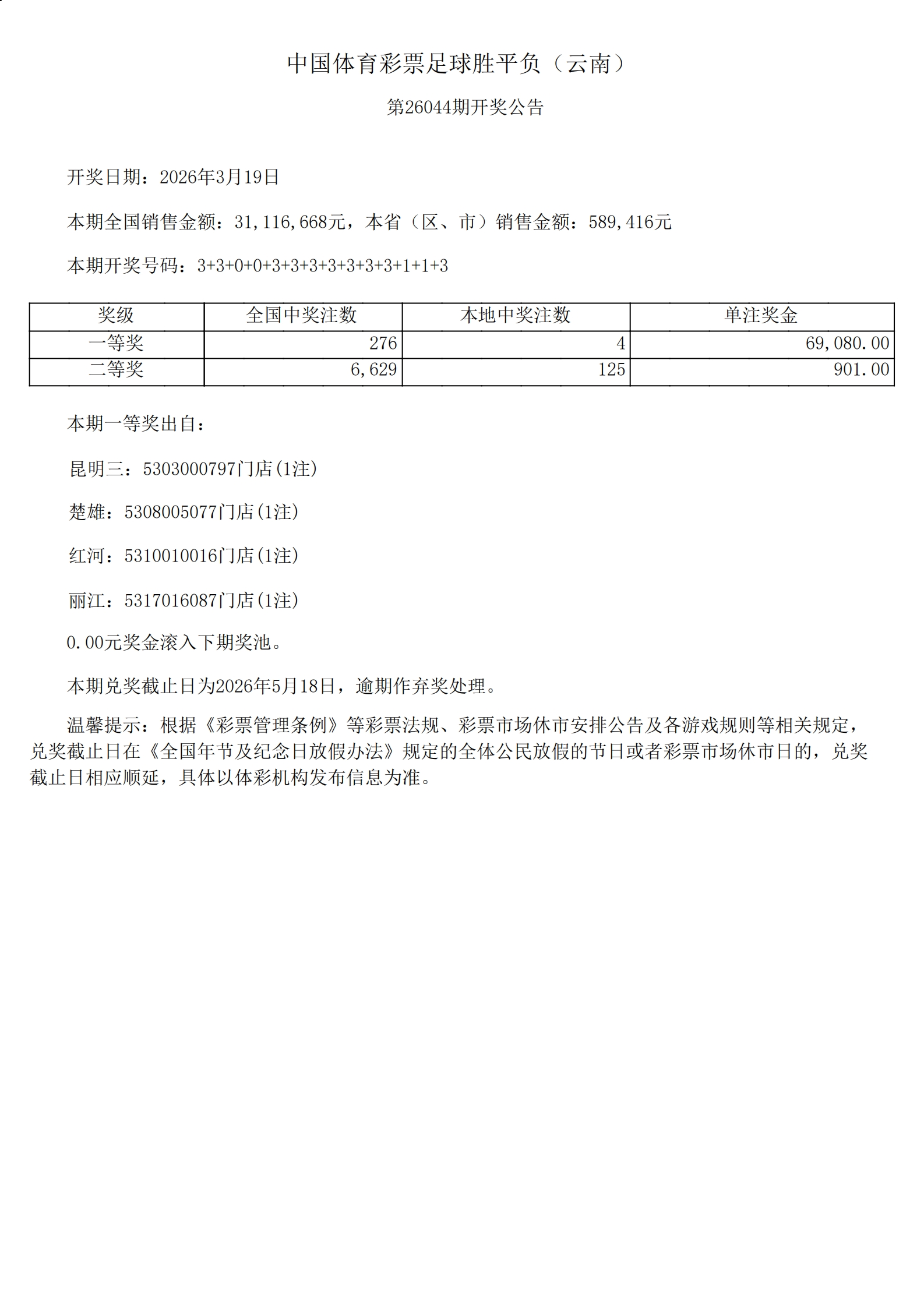 中国体育彩票温馨提示:购彩有节制,请理性投注!未满18周岁的未成年人不得购买彩票及兑奖!