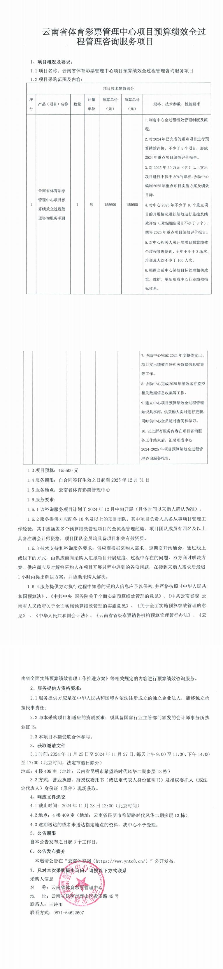 云南省体育彩票管理中心项目预算绩效全过程管理咨询服务项目公告