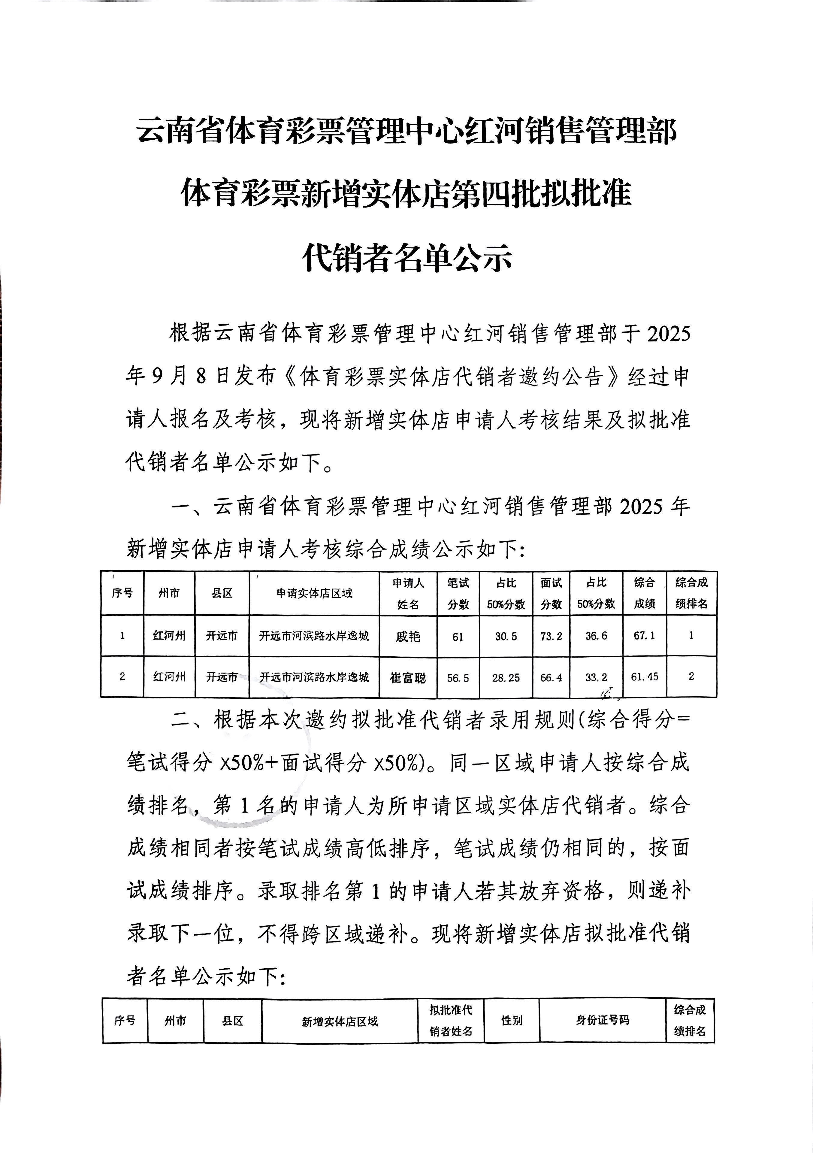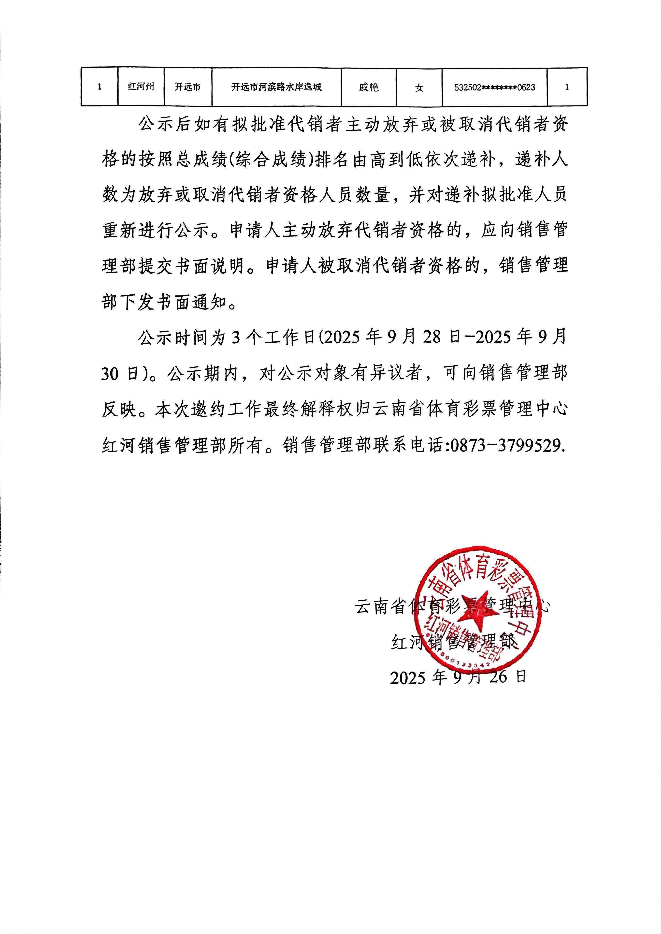红河销售管理部体育彩票新增实体店第四批拟批准代销者名单公示