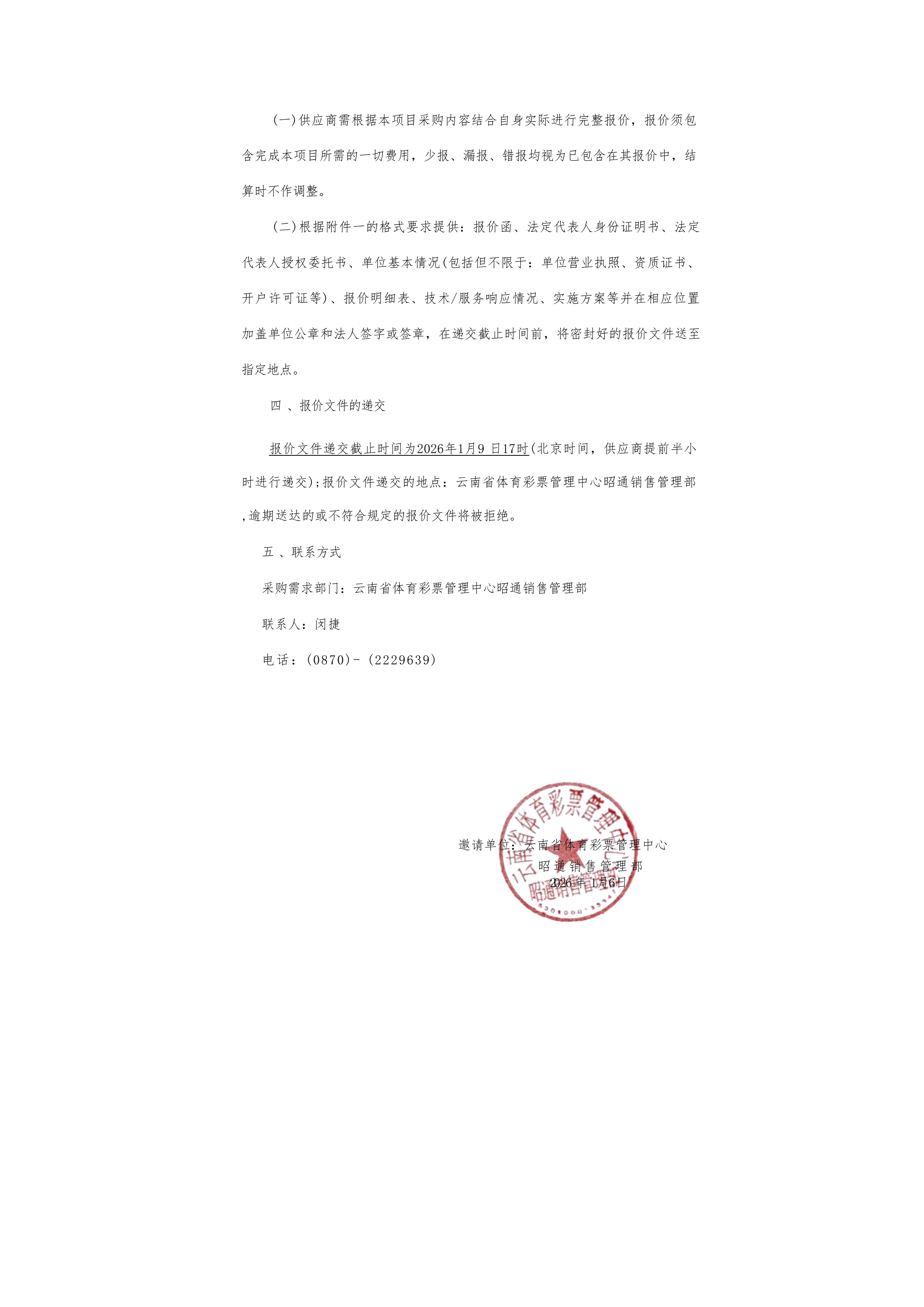 云南省体育彩票管理中心2026年昭通销售管理部宣传及网点物料采购项目
