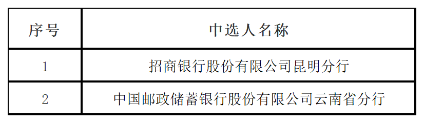 云南省体育彩票管理中心资金存放银行代理服务项目中选结果公告